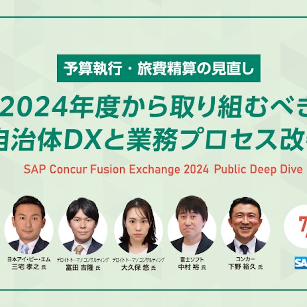 本年6月、「SAP Concur Fusion Exchange 2024– Public Deep Dive –」(主催:学校法人先端教育機構 事業構想大学院大学、株式会社先端教育事業)が開催されました。その初日に「【自治体DXウェビナー】 予算執行・旅費精算の見直し〜2024年度から取り組むべき自治体DXと業務プロセス改善」を実施いたしました。本稿ではその内容をレポートします!